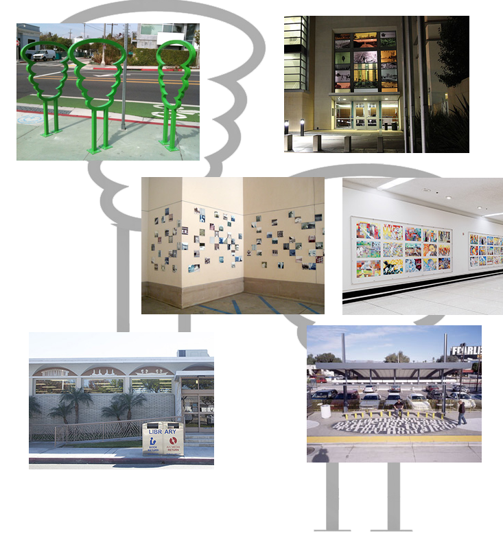 I have created numerous permanent and temporary public art projects. These include: Above the Fold, a project for the Los Angeles International Airport (May 2017-January 2018, Iconic Abstractions (2017) a permanent artwork for the Crenshaw Imperial Library in Inglewood, CA. Three bright green tree shaped bike racks for the city of Santa Monica, CA (2014) Other projects include a ceramic tile mural for the UCLA Santa Monica Hospital (2008) and projects for the MTA Orange Line and the West Valley Police Station, both in Reseda, CA (2005).