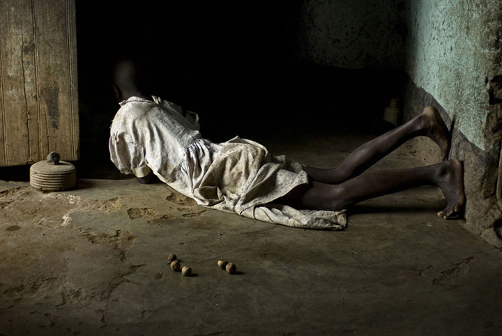 Molly, 14, playing a game with dried fruit. From the documentary project AIDS Orphans in Sub-Saharan Africa Archival pigment print Dimensions variable