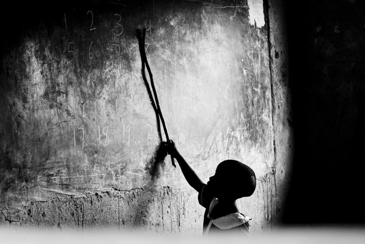 Primary school student pointing to numbers on a chalkboard. From the documentary project AIDS Orphans in Sub-Saharan Africa Archival pigment print Dimensions variable