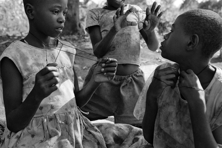 Helen and Molly, 14, and Eddie, 10, playing with string. From the documentary project AIDS Orphans in Sub-Saharan Africa Archival pigment print Dimensions variable