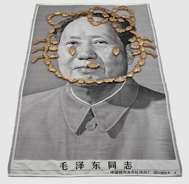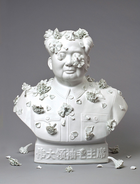 For the past three years Keiko Fukazawa has had residencies in China, in the fabled "ceramics capital" of Jingdezhen. As an artist working in ceramics, she created artwork by transforming prefab forms and decorations to express what she felt about modern-day China, a complex and often contradictory country caught up in the fast-spinning gears of modernization. She was keenly aware of Ai Weiwei, the Chinese artist who had spent time in the city during the production of the components of his epic installation Sunflower Seeds (2010) for the Tate Modern, London. Ai put hundreds of people to work making and painting millions of porcelain sunflower seeds, which were eventually shipped abroad and covered the floor of the Turbine Hall of the London museum in 2010–11. Subsequently Ai ran into trouble with the Chinese authorities—he is ever outspoken about the government’s censorship and mismanagement—and starting in April 2011, he was incarcerated for eighty-one days. Even after his release the government kept his passport so that he could not travel. Still, he managed to create art by remote.