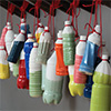 At the center of Fukazawa's installation Homage to A.W. is a Giant bicycle, similar to the one Ai used, placed in a stagelike setting, surrounded by black curtains. Small white porcelain flowers made in Jingdezhen, set at intervals on red thread, hang like rain falling over the vehicle and are also wrapped around it. Scattered around the bicycle are the tattered remains of exploded red firecrackers—red being a color associated with China and firecrackers something often used in Chinese celebrations. Last summer Ai Weiwei got his passport back, so that is indeed something to celebrate.