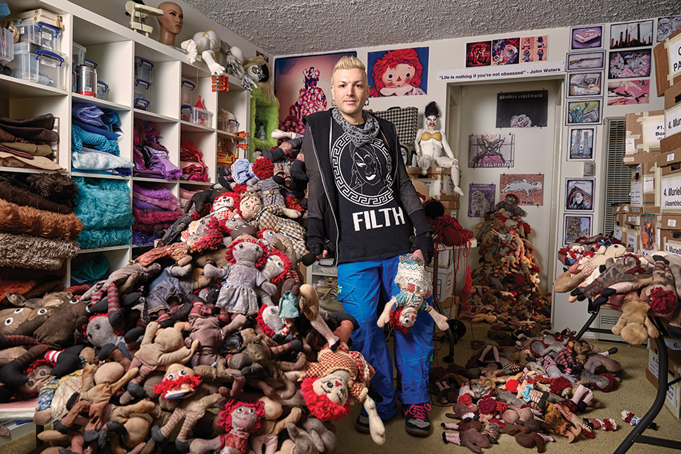 "Life is nothing if you're not obsessed," claimed the cult filmmaker John Waters. I imagine he would find a kindred spirit in the visual and performance artist Marsian De Lellis, whose handmade spectacles memorialize obsessional lives. Drawing inspiration from the offbeat characters whose private manias become public fodder for tabloids, talk shows, and reality television, De Lellis's creations are the hybrid offspring of fact and fiction, his productions equal parts art, performance, and object lesson on polymorphous perversity.