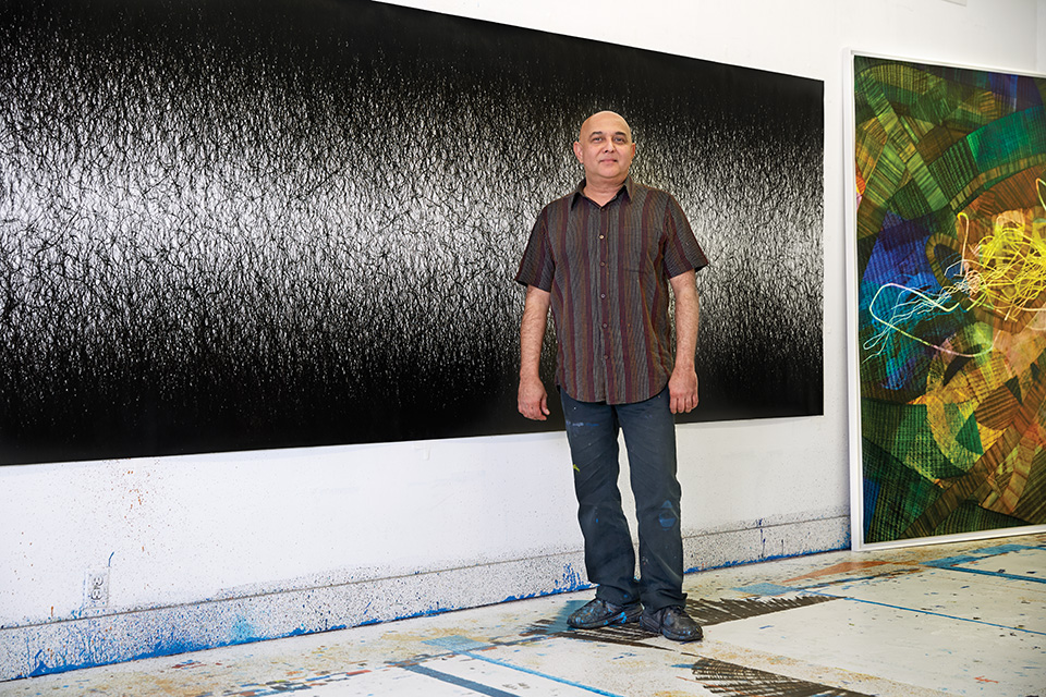 When considering the art of Sandeep Mukherjee, it is best to think not in nouns but in verbs. His large-scale, site-sensitive works are often composed in modular panels that can be reconfigured as the site of their exhibition shifts. He mystifies the eye in his refusal to insist on continuity from one panel to the next even as the viewer comprehends the logic of his pieces. The larger works often have the ability to exist partial or whole while never being incomplete.